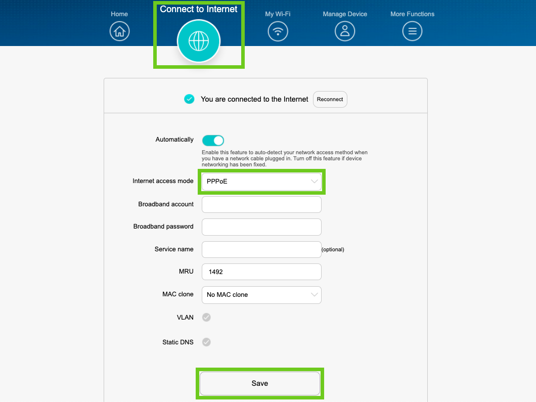 How to set up your Huawei WS5200 Fibre Router for a PPPoE connection
