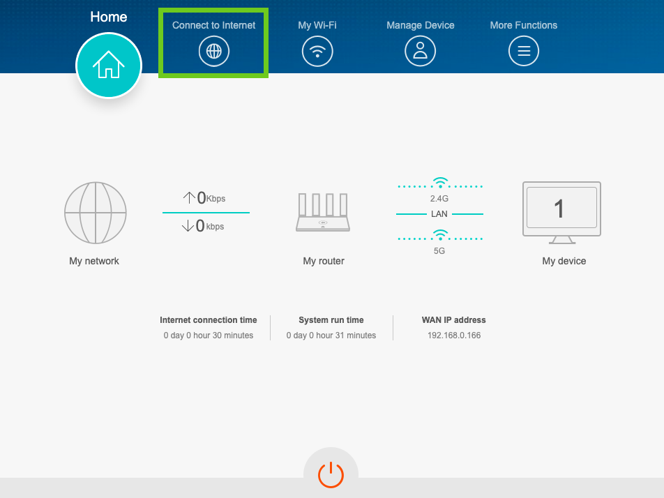 - When on the home screen select ‘Connect to Internet’ tab to change settings.