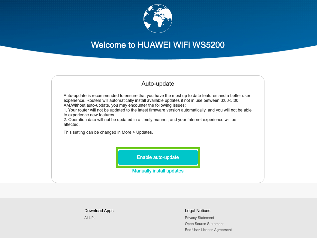 Use of the Huawei AI Life smartphone app to connect to your router.