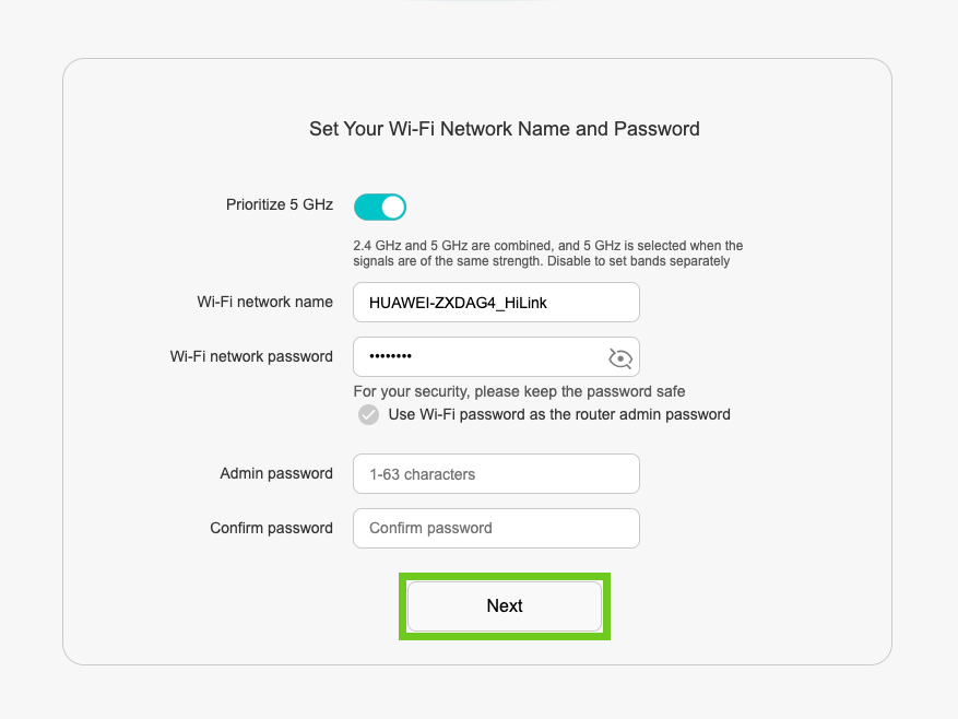 Set up the Huawei WS5200 Fibre Router