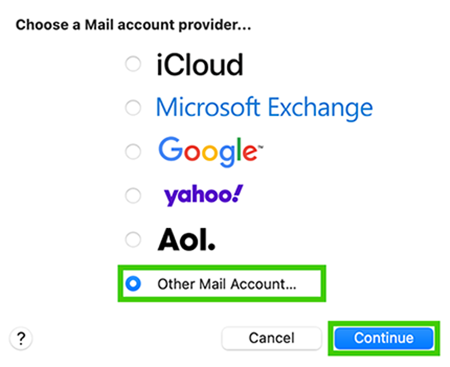- Various email providers will appear, select ‘Other mail account’ and click continue.
