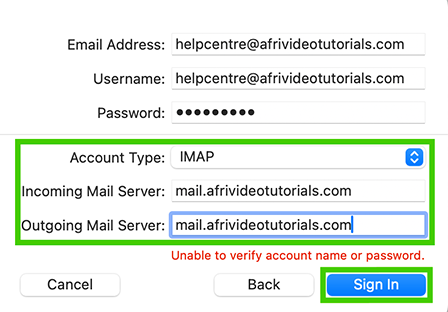 You may be prompted to provide more details if a block appears stating it was unable to verify the account name or password. The username is the same as the email address provided.