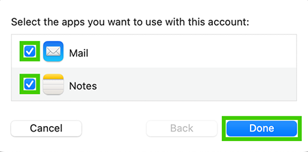 - Select the Apps you wish to use with this email account and click ‘Done’.
