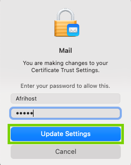 - Enter your Apple device's Admin login credentials and select ‘Update Settings’.