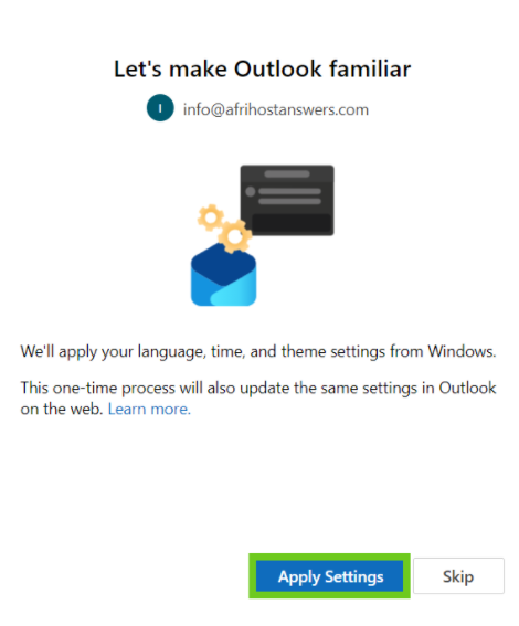 - Select ‘Apply Settings’ to complete the outlook setup.