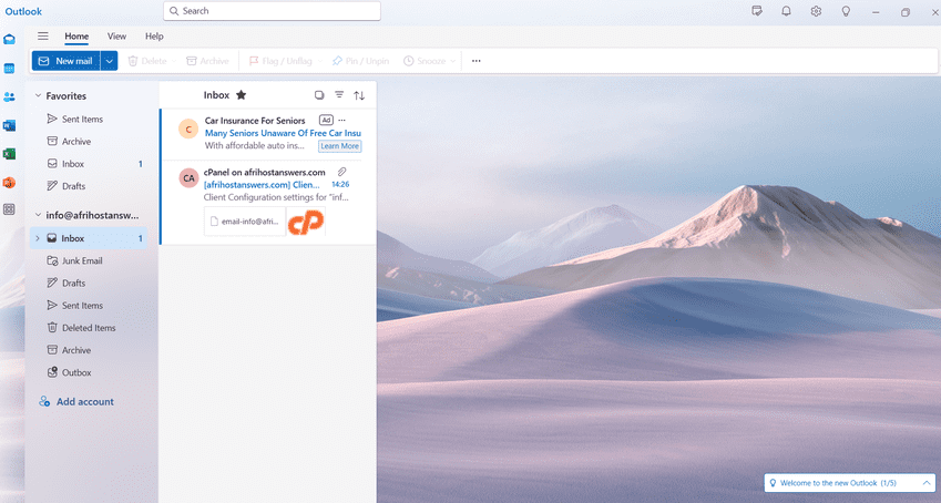 Follow the steps below to set up your Afrihost-hosted email address in Microsoft Outlook 2021 / 365.