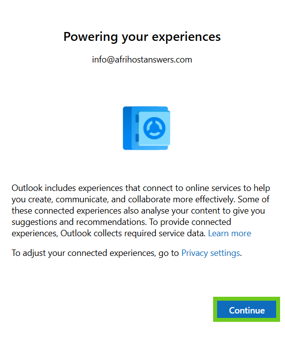 - Select ‘Continue’ once done with the email settings.