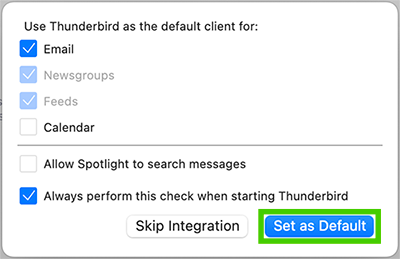 - Select 'Set as Default' to make Thunderbird your default email client.