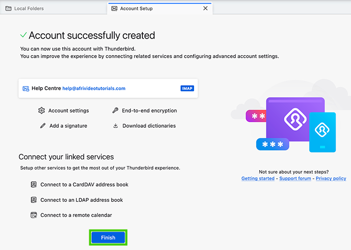 - Select ‘Finish’ to close the Account Setup screen.