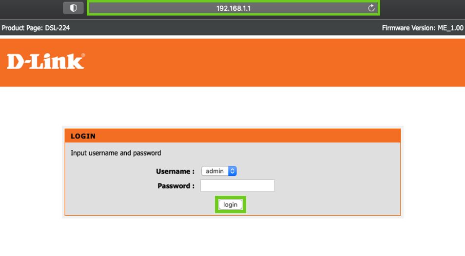 - Log into the router. Go to the IP address of your router: http://192.168.1.1 ;
