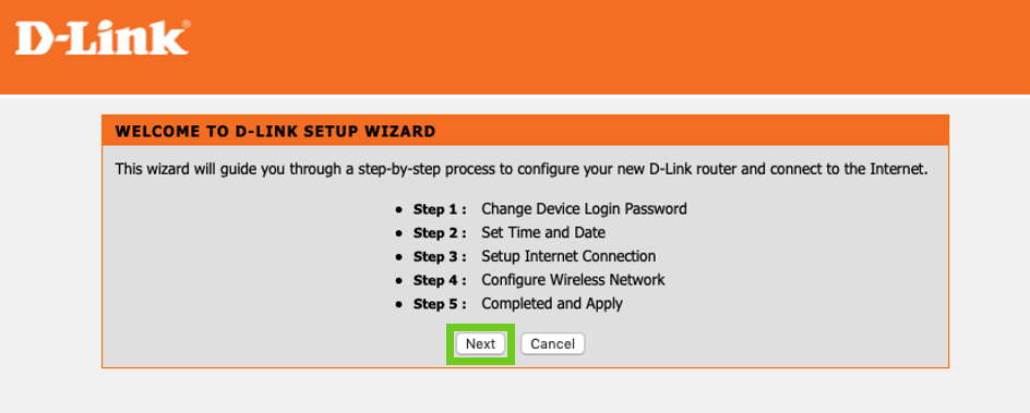- Step 1: Change your routers login password. Enter the current default password and then enter your new password to access the router. Click ’Next’.