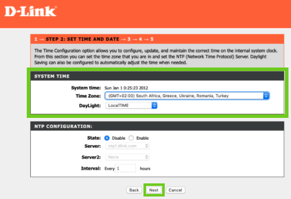 - Select the correct time zone for your location. South Africa is in time zone GMT+2.