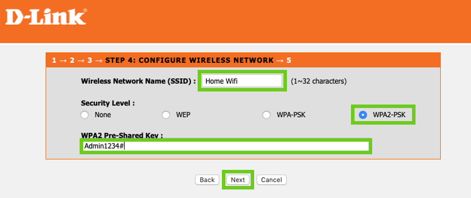 - Enter your wifi password under WPA2 Pre-Shared Key.