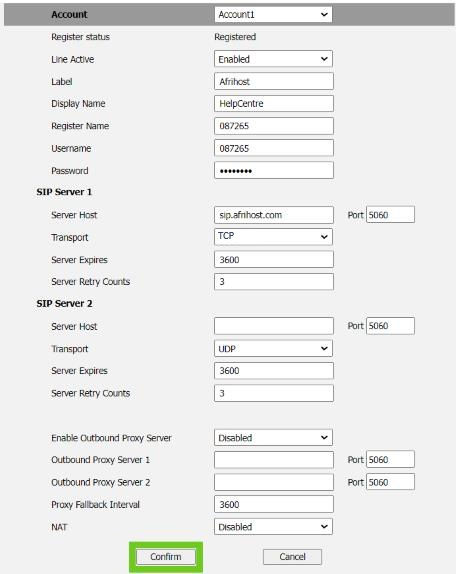 - SIP Server 1 - Server Host: sip.afrihost.com.