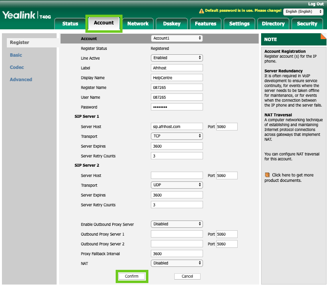 How to set up your Yealink VoIP phone with your Afrihost Pure VoIP Account.