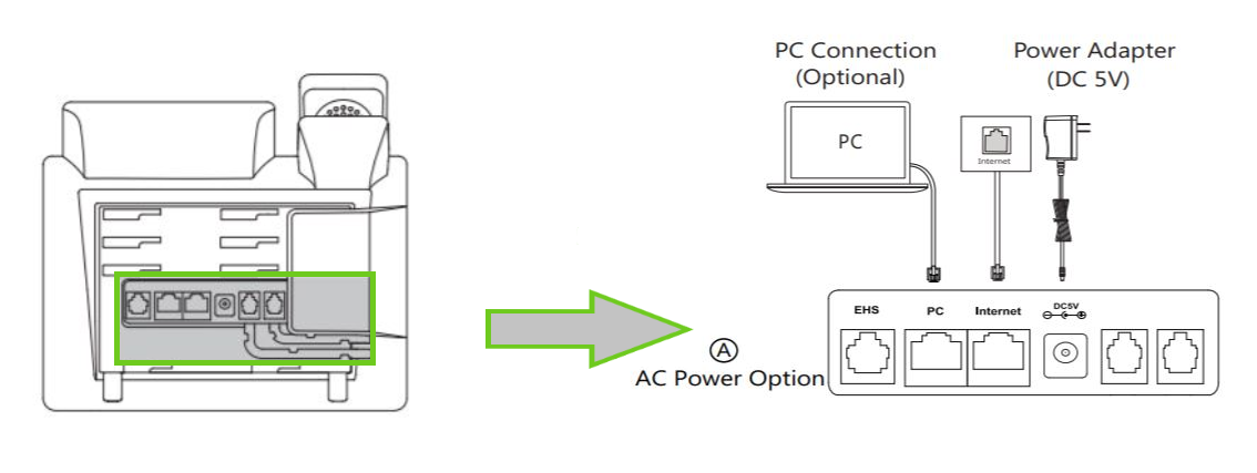 - Connect up the handset into the port at the back of the device.