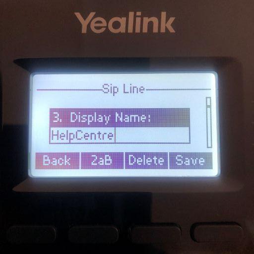 Use the alphanumeric keypad to enter the name of the account that will display on the LCD screen, then press the ‘down’ arrow to get to the next settings screen.
