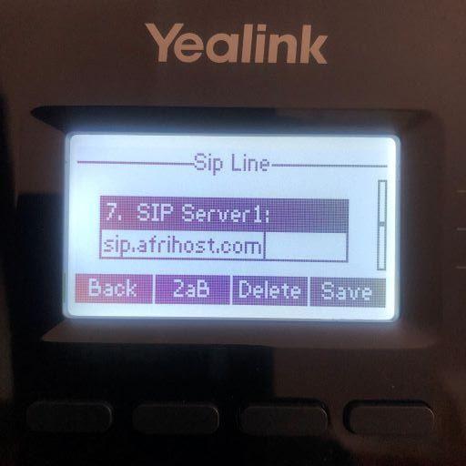 Use the alphanumeric keypad to enter the Afrihost VoIP SIP server details provided, then press the ‘Save’ button.