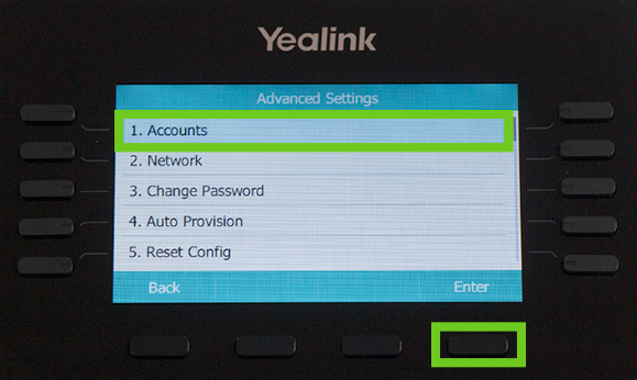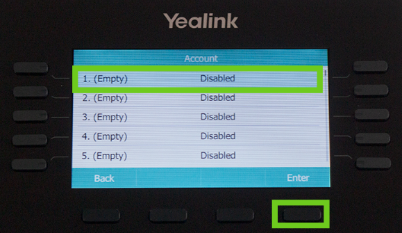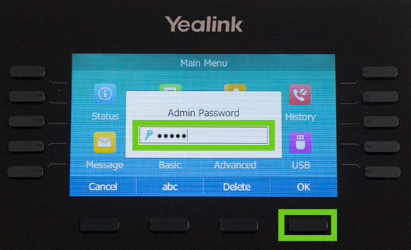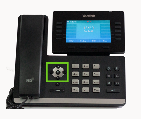 - Press the ‘OK’ button on the Yealink VoIP phone to view the IP address.