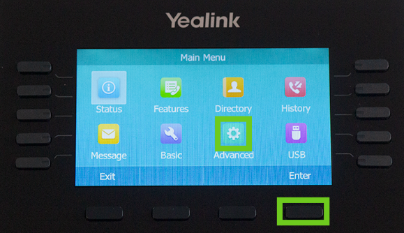 - Scroll down to ‘Advanced’ and press the ‘Enter’ softkey to select.