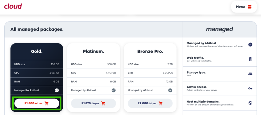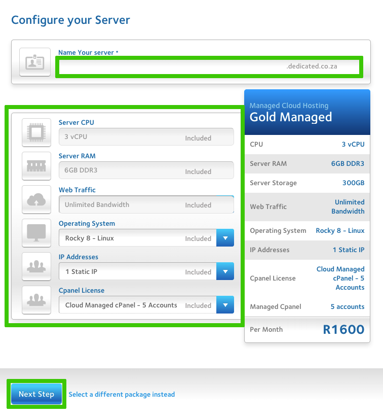 - Select a server package that suits your requirements under ‘All managed/self managed packages’ and click on the price.