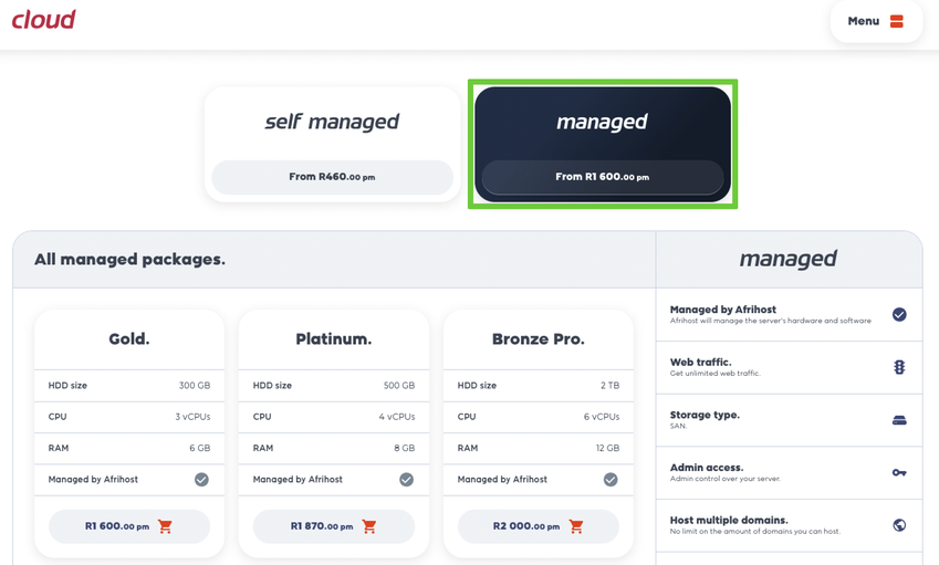 - Self Managed – This is a self-managed cloud server offering you a custom server environment with full root /administrator access. We manage the cloud hardware infrastructure of you.