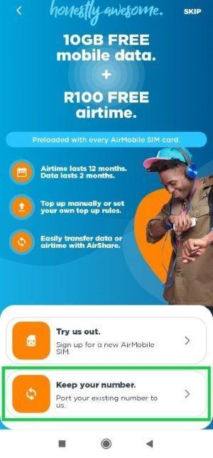 - Select the option ‘Keep your number’ to port to Afrihost AirMobile.