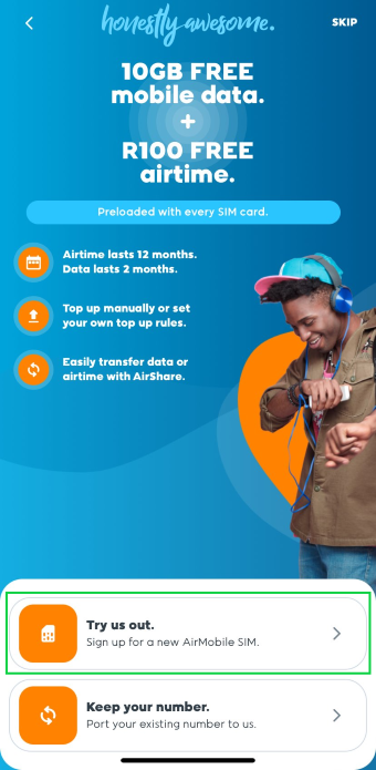 How to sign up for Afrihost AirMobile in the AirMobile App