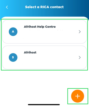 - Select an existing RICA contact or tap the + icon to add a new one.