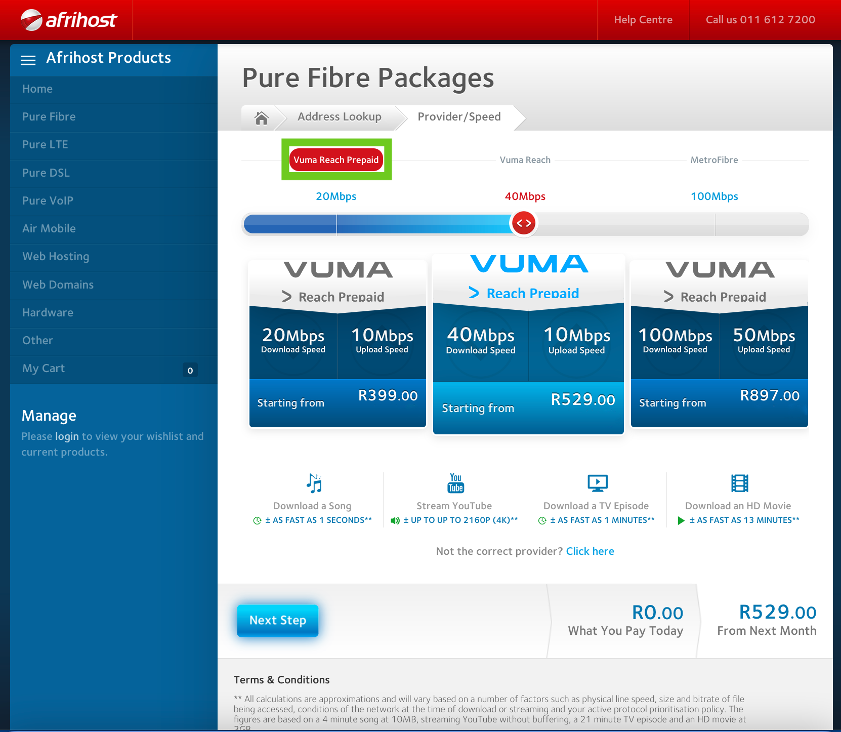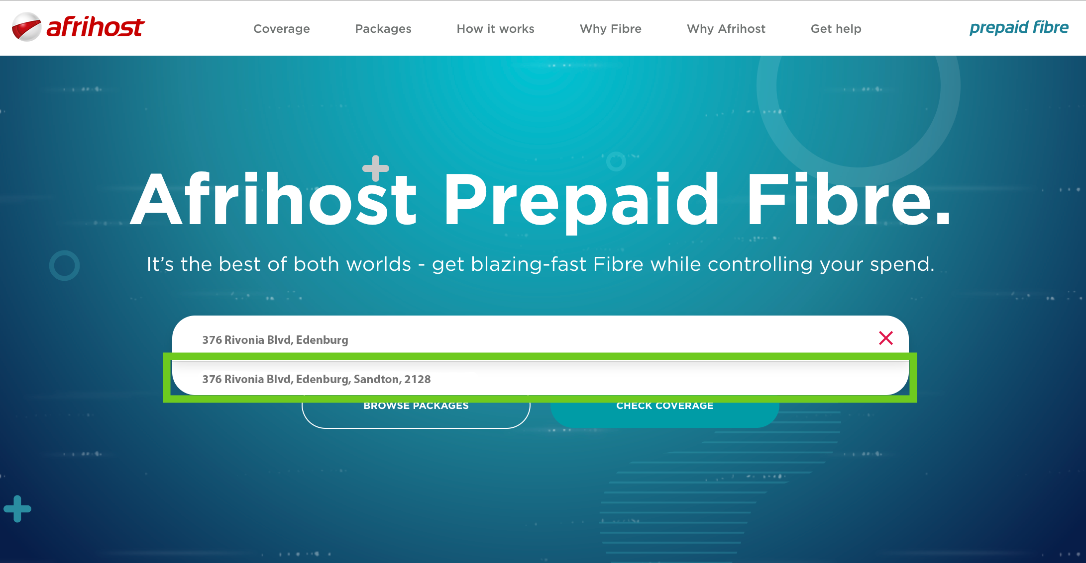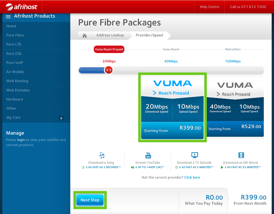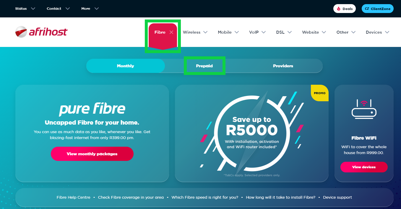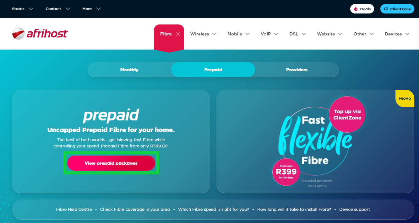 - The Afrihost Prepaid Fibre page will open.
