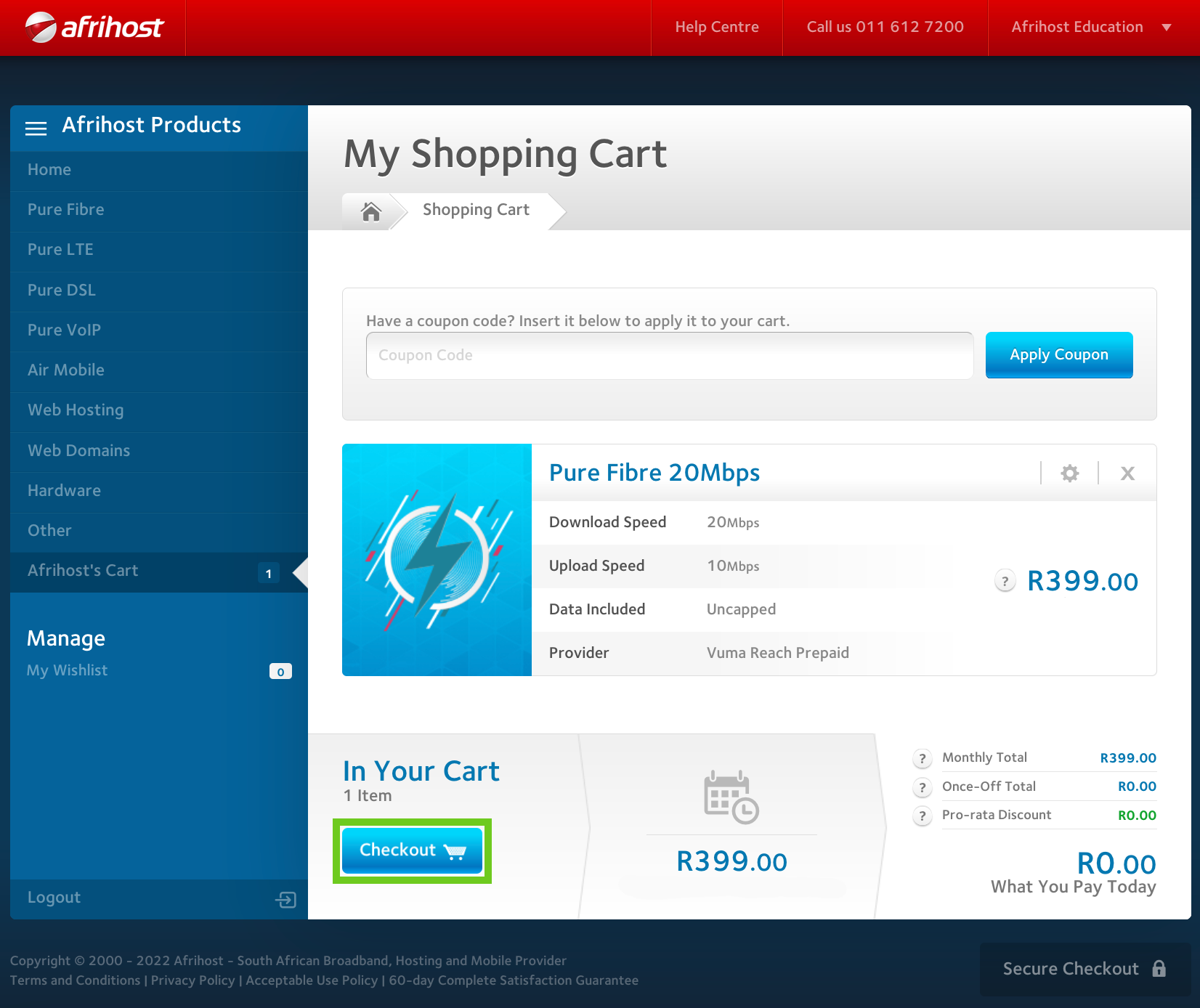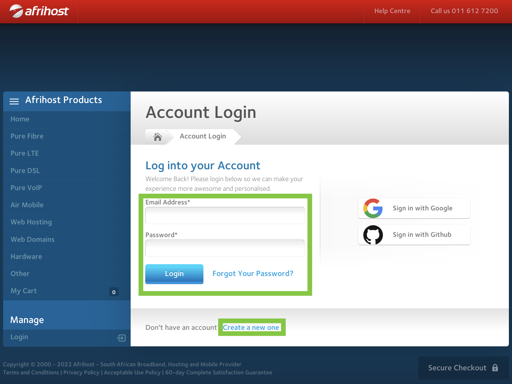 - Navigate to the Afrihost website.