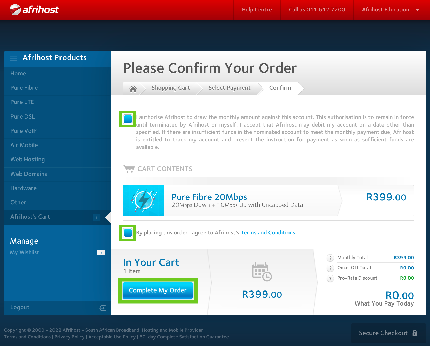 - Click the ‘Complete My Order’ button.