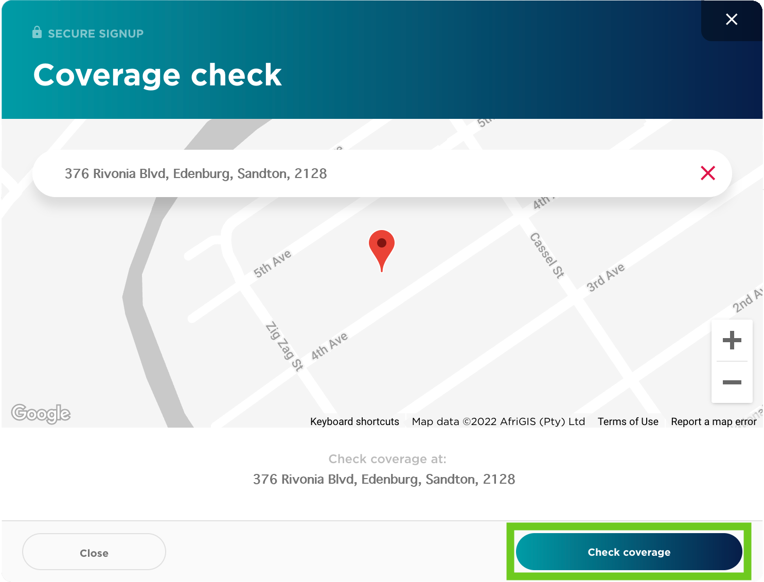 - Click the ‘Check Coverage’ button.