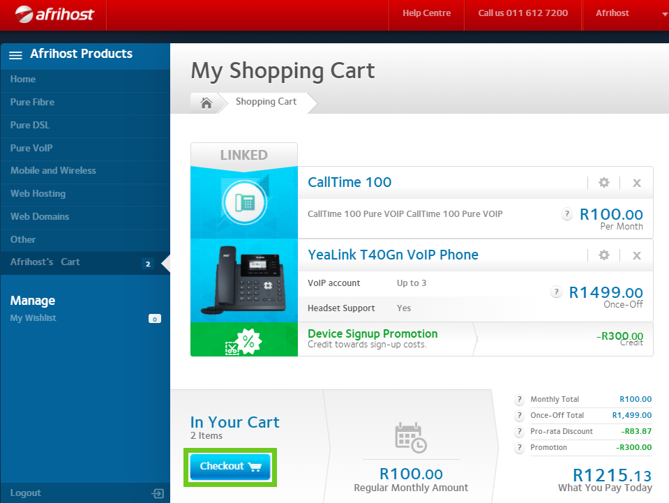 - You will be taken to your shopping cart. Confirm the items in your cart are correct and select ‘Checkout’.