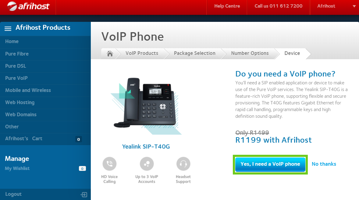 - If you need a VoIP device select ‘Yes, I need a VoIP phone’ or ‘No thanks’ if you have your own or will use an app.