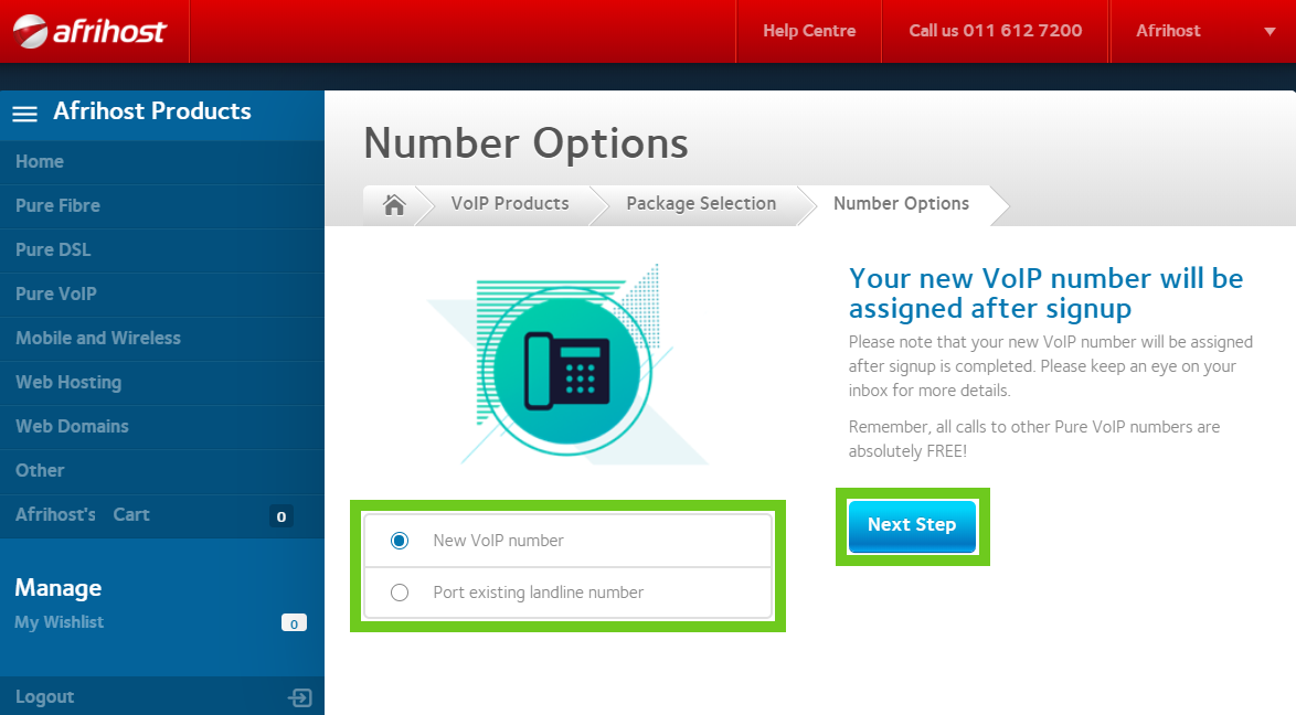 - Select to sign up for a ‘New VoIP number’ or to ‘Port existing landline number’.