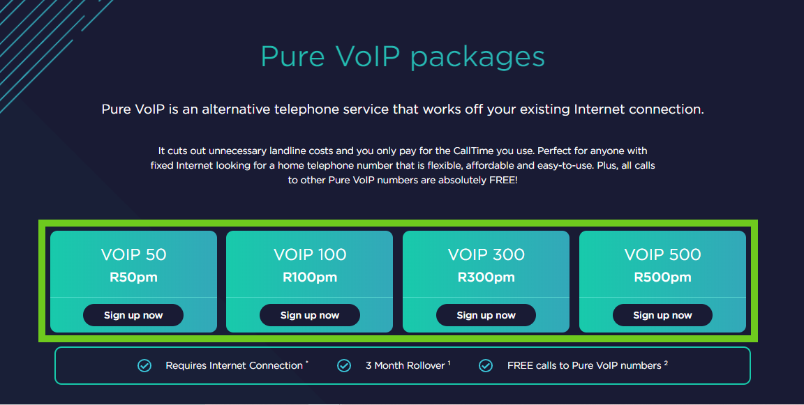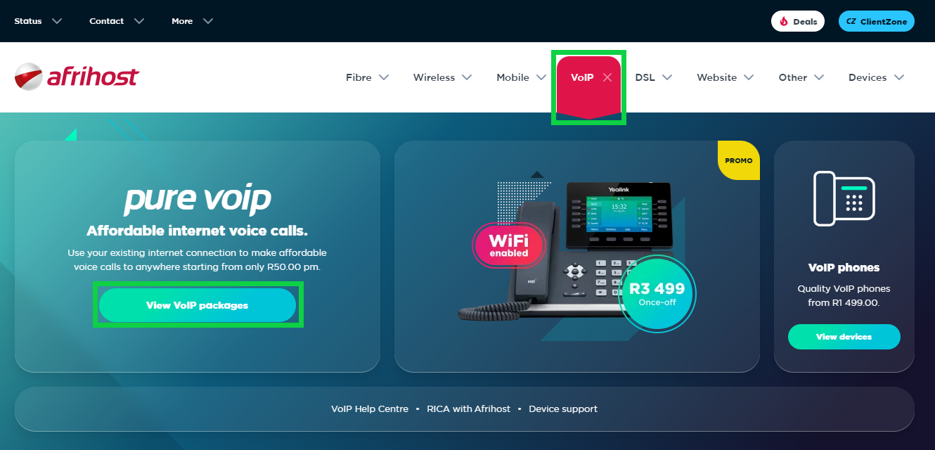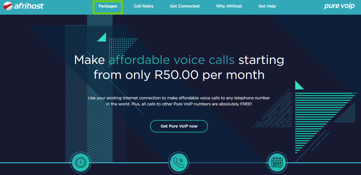 - To view the VoIP packages available, select ‘Packages’ from the top menu or scroll down to the package section.