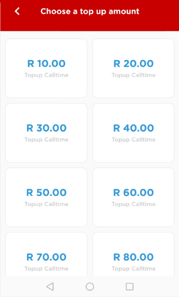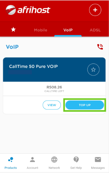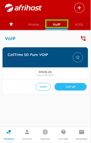 When you are running low on or have depleted your VoIP CallTime you can easily get more by simply topping up your account in the Afrihost Mobile App.