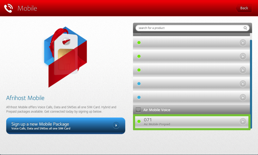 - Select your Legacy Afrihost Mobile package on the right-hand side.