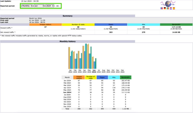 Select the date period you want the stats for under ‘Reported Period’ and click ‘OK’.