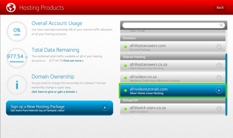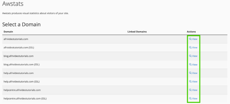 - Select 'View’ in line with the domain or subdomain you wish to view.