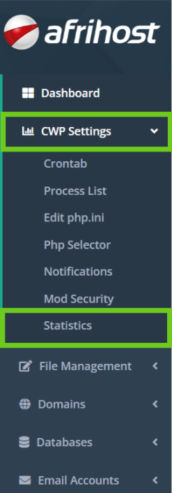 - Click on ‘CWP Settings’ then select ‘Statistics’ below.