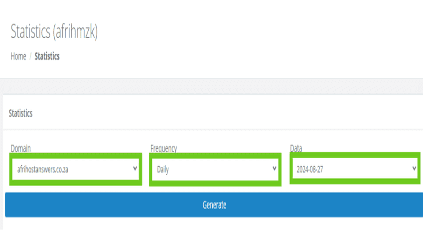 - Frequency: Select the period you wish to review the daily, weekly or monthly statistics report.