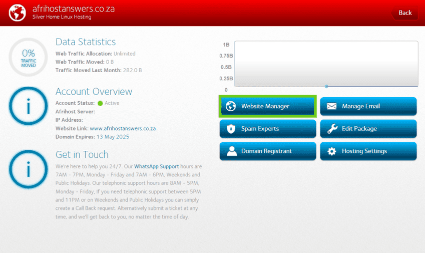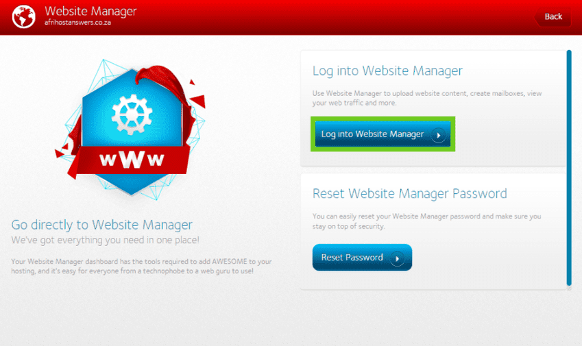 - Click on ‘Website Manager’ button to log into the CWP.