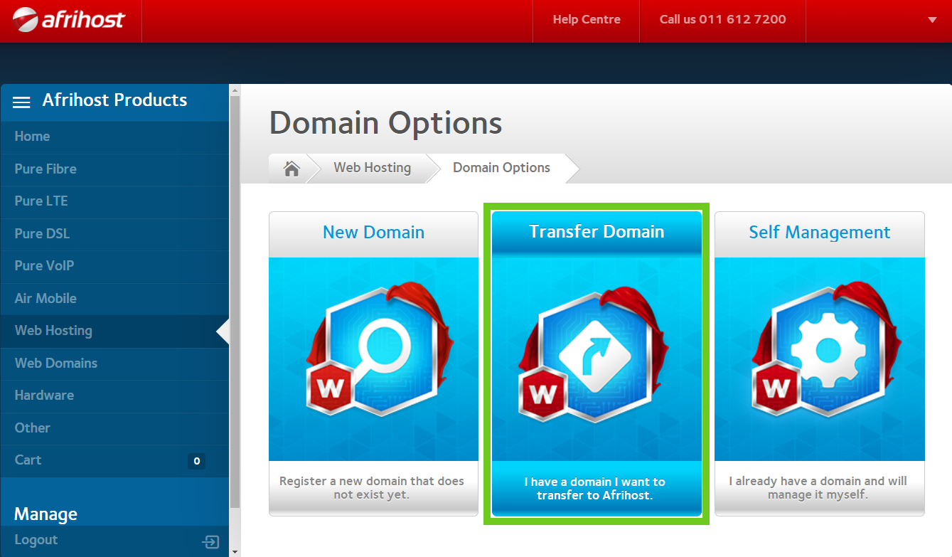 Transfer an existing domain to Afrihost via the Afrihost Order Form: