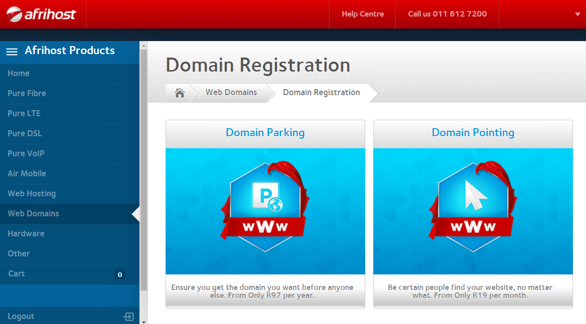 For a Parking or Pointing Package, click on the ‘Web Domains’ tab when signing up.