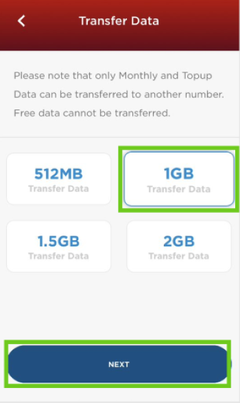 - Select the amount of data you wish to transfer.