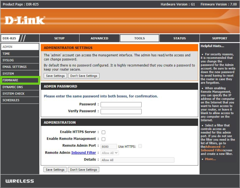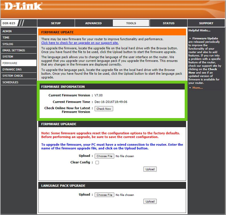 Follow the steps below to update the newer D-Link 825 router’s firmware: