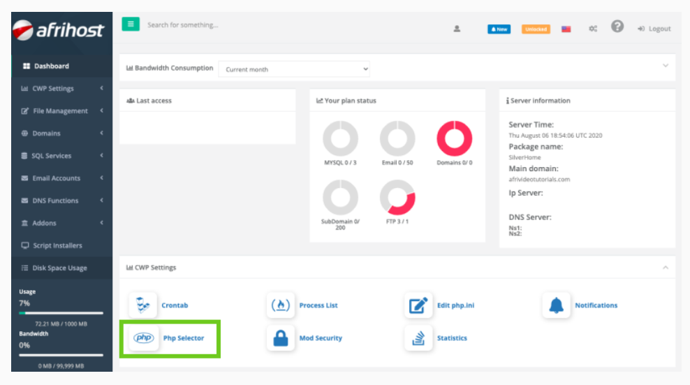 - You are now in the Centos Web Panel (CWP) dashboard.