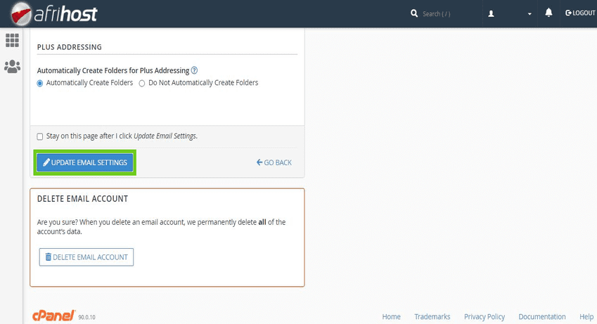 - Scroll down and click on ‘Update Email Settings’ to save your changes.